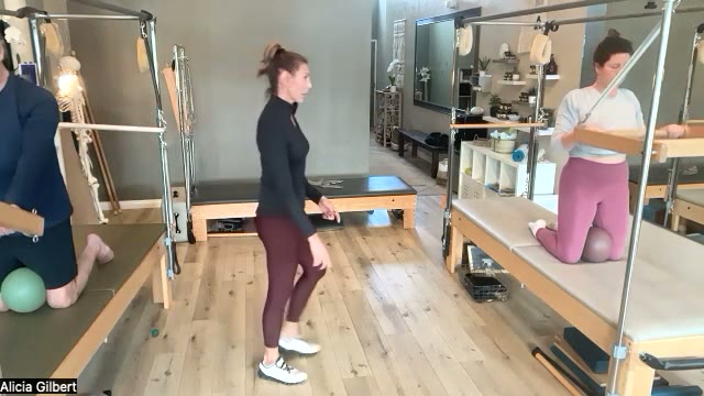 This session continues exploring the shoulder girdle, addressing common causes of neck pain by teaching you how to move from the spine rather than overusing the shoulders. Using the Cadillac's spring bar and push-through bar, Alicia guides students through modified pull-downs, straight arm presses, and lat-widening techniques. You will also practice deep spinal articulation with the Pilates roll-down, seated twists, and a modified cat-cow stretch. Throughout the class, emphasis is placed on grounding through the feet, maintaining proper pelvic alignment on the sit bones, and finding deep core connections to support upper body mobility.